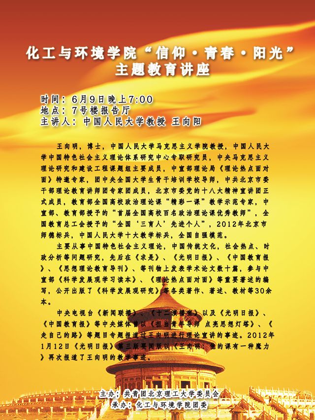 化工与环境学院信仰·青春·阳光主题教育讲座