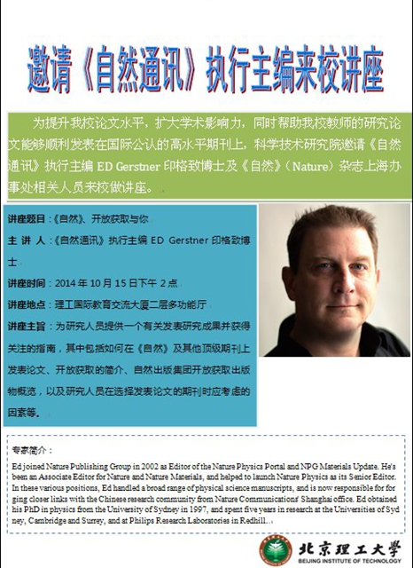 为提升我校论文水平,扩大学术影响力,同时帮助我校教师的研究论文能够顺利发表在国际公认的高水平期刊上,科学技术研究院邀请《自然通讯》执行主编ED Gerstner印格致博士及《自然》(Nature)杂志上海办事处相关人员来校做演讲。