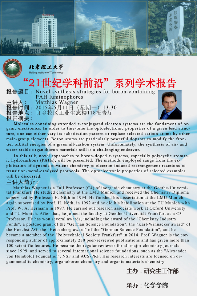 > 化学学院"21世纪学科前沿"系列学术报告预告