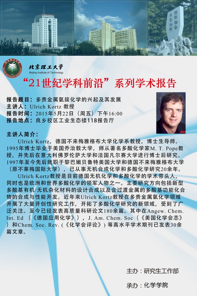 > 化学学院"21世纪学科前沿"系列学术报告预告