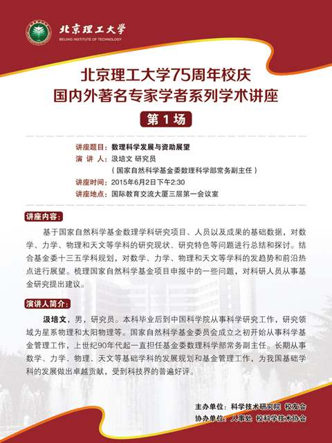 > 数理科学发展与资助展望——威尼斯884675周年校庆国内外著名专家学者系列学术讲座(第一场)