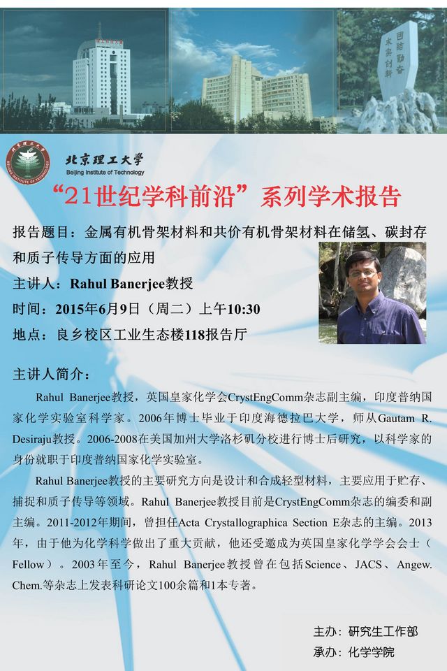 > 化学学院"21世纪学科前沿"系列学术报告预告