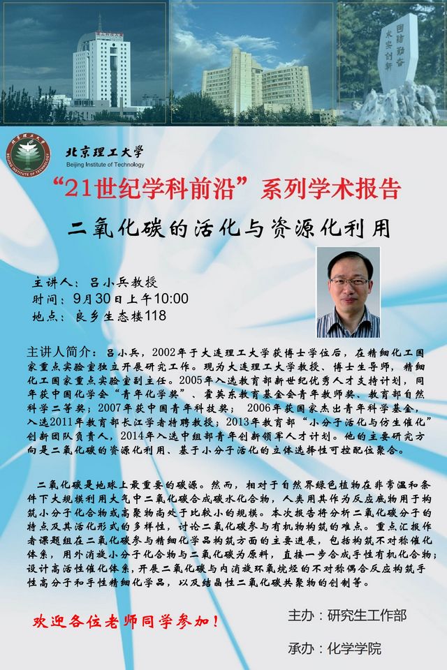 > 【化学学院】“21世纪学科前沿”吕小兵教授学术报告通知