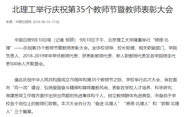编辑:吴楠 审核:王征 阅读次数:原文标题:北理工举行庆祝第35个教师节暨教师表彰大会