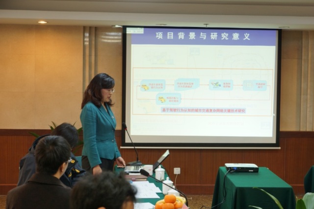 验收会上,首先由项目组成员王美玲教授就项目研究及成果情况进行了总结汇报。该项目针对北京城市交通问题,以浮动车为研究平台,以其驾驶员的驾驶行为为研究对象,将浮动车抽象为智能传感器,将驾驶行为作为此智能传感器的输出,通过构建驾驶行为认知方法以及基于计算几何理论的快速、准确的地图匹配方法,结合D-S证据理论,实现基于驾驶行为认知的城市道路交通状况描述;同时,基于复杂网络理论,研究解决城市交通复杂网络疏导控制过程中存在的数据时延、丢包、错序等问题。在技术与理论层面,对北京市实现“快速通勤”这一发展目标起到了促进作用。并且,项目申请国家发明专利3项,已授权1项,发表论文26篇,其中SCI收录7篇,EI收录19篇。相关研究成果获得北京市科学技术二等奖1项、教育部自然科学二等奖1项等。