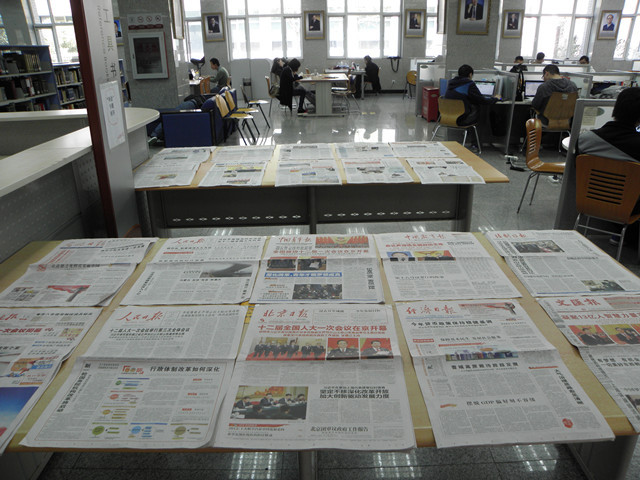 2013年的全国政协第十二届第一次会议和第十二届全国人大第一次会议(简称“两会”)是在实施“十二五”规划承上启下之年召开的一次重要会议,是国内外了解中国新一届领导人选举和大部制改革的窗口。图书馆借助此次“世界读书日”主题系列活动,利用我馆的报刊资源向师生展示有关“两会”专题的新闻报道20余份,以便读者更方便、快捷、集中地了解两会精神、学习两会精神。