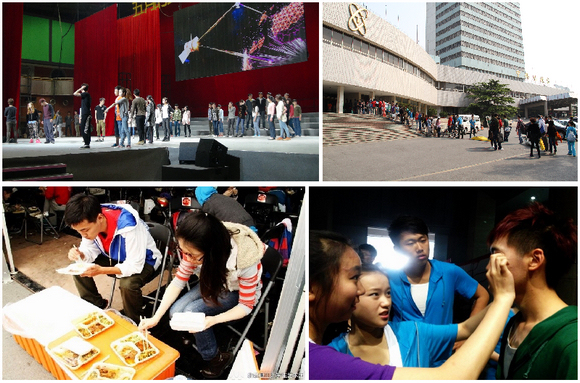 为了本次会演,我校大学生艺术团各分团及二级社团的学生演员,与航模队、节能车队的操作员、车手、技术保障人员共计65名同学付出了艰苦的努力,他们克服了两校区路途遥远及学业压力等诸多困难,进行了四十多天的排演,更是牺牲了“五•一”假期,全天在中央电视台参与联排。为了达到最佳演出效果,节目前后进行了二十多次的大规模修改,在排练中大学生艺术团柳婷婷、李宛清两名同学手部受伤,但是仍然坚持排练。