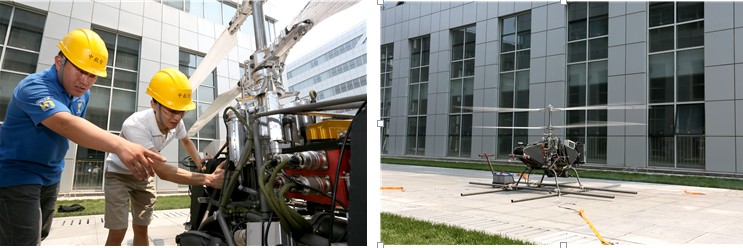 解决了飞行控制器,田刚印和满意又设计了一个新的机型,验证了一下核心部分,就做出了第一台无人直升机,这架身长1.5米,重量仅290公斤的无人直升机,有两个共轴的螺旋桨,没有尾翼,占地面积小,零件少,在狭小空间起降特别有优势(甚至可以放到汽车后备箱),抗风性能特别好,能实现了无人机的各种功能,自主起飞、自主降落、自主航线飞行。飞机因为是全新设计,绕开了传统直升机所能碰到了所有专利,出口不会遇到技术封锁,因此市场潜力巨大。