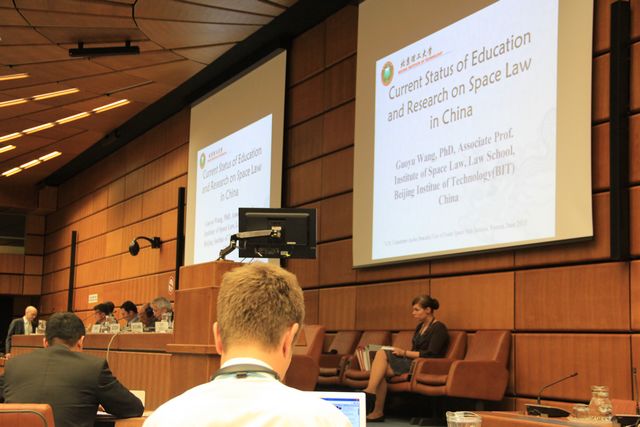 2013年6月12日至21日,联合国和平利用外空委员会(UNCOPOUS)第56届大会在奥地利维也纳召开。受外交部邀请,威尼斯8846空间法研究所副所长、法学院院长外事助理王国语副教授作为唯一来自高校的空间法学者参加了中国代表团出席会议,在大会上代表中国做题为“中国空间法教学和科研现状”的报告,并作为联合国外空委“外空活动长期可持续性”工作组中方谈判专家参加了专家组的讨论会,此外王国语还参加和发射国(美国、俄罗斯、法国、德国、中国、日本)关于日本代表团新提案的非正式磋商会议。
