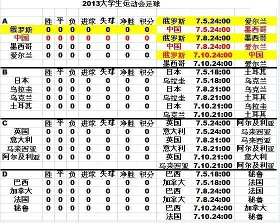 2013俄罗斯喀山大学生运动会男子足球赛程-(转自维基百科)