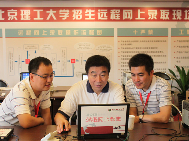 郭大成还审阅了我校在北京、黑龙江等省份的考生资料,了解了各省的录取分数情况。就已经录取结束的省份来看,我校本年度录取情况甚为喜人,生源质量整体高于去年。一批次理科录取平均分高于重点线100分的省份达到22个,去年为17个;理科录取最低分与重点线分差高于去年的省份达20个,文科的省份达23个;高分数段考生人数比去年翻一番,高分段考生人数增多有利于我校拔尖创新人才培养;我校招生录取专业满足率达到95%以上,得到了考生和家长的一致好评。