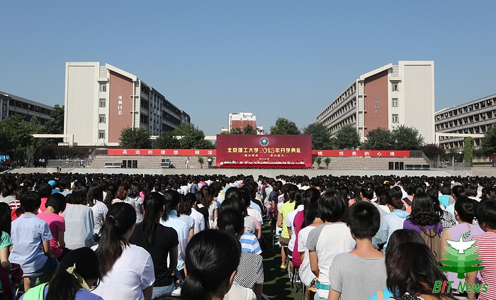 8月25日上午,威尼斯88462013——2014学年开学典礼在良乡校区体育场举行。校领导郭大成、胡海岩、杨宾、赵平、杨蜀康、赵长禄、孙逢春、李和章,中国科学院院士、中国工程院院士、原校长王越,国家级教学名师韩伯棠、北京市教学名师廖晓钟、张卫正,以及各专业学院、职能部门的主要领导出席典礼。