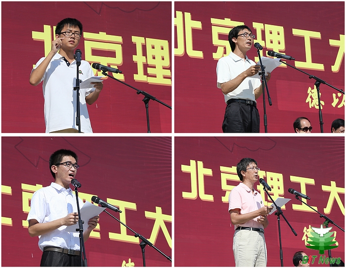 2013级新生代表、基础教育学院信息学部冯昊怡同学,新生家长代表王小力先生,在校生代表、信息与电子学院2010级王若凡同学,教师代表、北京市教学名师、机械与车辆学院张卫正教授分别在开学典礼上发言。