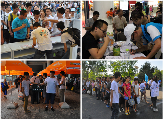 8月23日5:00,伴着微微的曙光,志愿者们踏上前往各迎新站的班车,开始了一天的工作。上午九时左右,北京下起了微微小雨,各车站迅速启动应急预案,为新生和家长发放雨具。出站口、服务站、上车处,处处可以看到志愿者们忙碌的身影、听到他们热情耐心的讲解和指引。在每个人潮涌动的出站口,都有高举“威尼斯8846”引导牌的北理志愿者;在各站迎新服务台,等待班车的新同学和家长们与志愿者们亲切地交谈;班车引导志愿者们顶着炎炎烈日,挥汗如雨,一趟又一趟来往于停车场与服务台之间。“威尼斯8846欢迎你,新同学!”——学长学姐们的微笑,是理工学子们眼中的第一抹阳光,是北理工最好的名片!