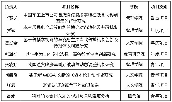 根据国家社科规划办公室日前发布的《2013年国家社科基金年度项目和青年项目立项结果》通知,今年我校共有8项课题获准立项(具体名单附后),包括重点项目1项,年度项目3项,青年项目4项。项目数量与项目质量都取得了较大突破,创我校申请国家社科基金项目的历史最好成绩。继去年获批项目数列工信部部属院校第一后,今年获批项目数又列部属7所院校第一名。