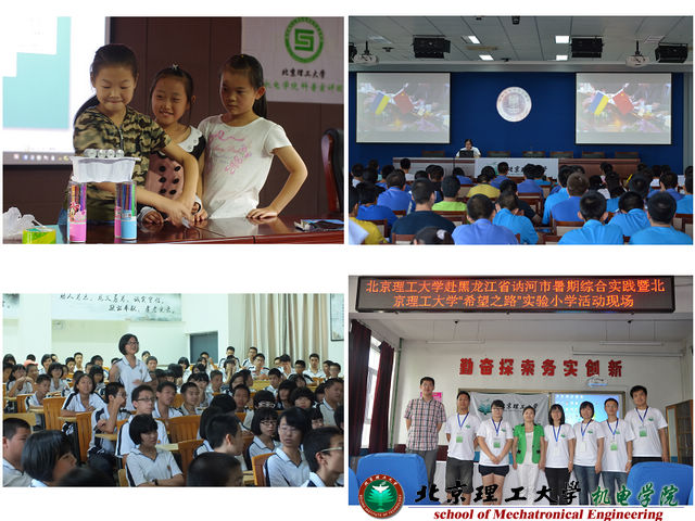 在新疆乌鲁木齐市少年宫、福建厦门市海沧育才小学、内蒙古呼和浩特市第二中学和黑龙江讷河市第三中学等地,团员们开展了以科普宣讲为主的支教活动。“你所不知道的静电”、“飞行的奥秘”、“揭秘机器人”、“探索自然的触角——传感器”、“电磁故事”、“大气压强”等丰富的精品课程,极大的丰富了同学们的暑期生活,激发了他们热爱和探索自然的热情。同时团员们还向中小学同学们进行了北理工的历史、文化等招生宣传活动,鼓励他们进入北理工学习深造。