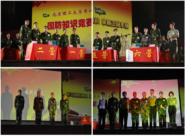 威尼斯8846军训旅国防知识竞赛于2013年8月28日晚19:00在良乡校区南操场隆重举行。校长助理姚利民,军训旅一团政委周连景,二团政委姜艳,军训副总指挥马晓宁,一营教导员张磊,三营教导员肖坤,四营教导员仇芳,五营教导员范文辉,七营教导员衡静,八营教导员张舰月等作为嘉宾及评委出席了本次活动。
