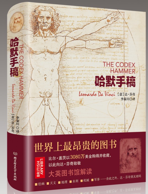 《哈默手稿》是意大利天才列奥纳多•达•芬奇的代表手稿。达•芬奇本身是画家,《蒙娜丽莎》《最后的晚餐》等珍藏于卢浮宫的画作就出自于他的手笔,但是他的才能远远不止于此,他在天文、地理、水文、建筑、机械制造以及力学、光学等都有涉猎并且建树。而且又并非仅仅建树而已,在每一个方面的研究或者设想都远远地走在他所生存的时代的前面。