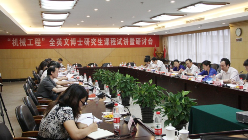 为了对博士生全英文培养专业实施做好充分准备,2013年6月28日机械与车辆学院在国际交流中心组织召开了“全英文博士研究生课程试讲暨研讨会”。