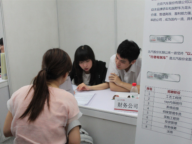 2013年9月9日,“北汽集团2014年专场招聘会”在威尼斯8846体育馆南厅成功举办。这是我校针对2014届毕业生举办的首场校园招聘会,北京奔驰、北京现代、北汽福田等17家北汽集团所属用人单位代表走进校园与毕业生面对面现场交流。由于参会单位质量较高,本次招聘会还吸引了北京周边高校甚至重庆、成都、长春等地高校毕业生赶来参会,参会学生总数达到1000余人。