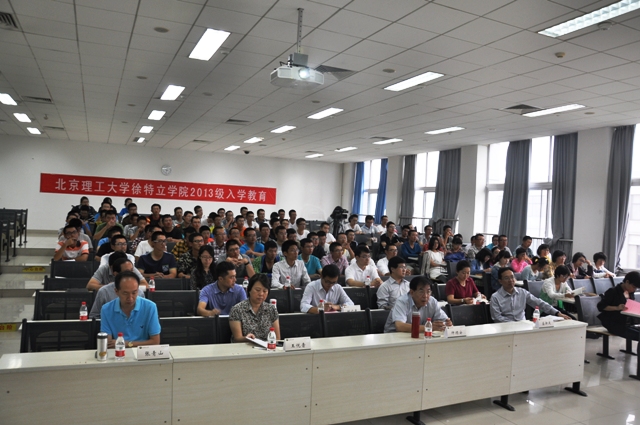 2013年9月13日上午,徐特立学院在良乡校区理科教学楼303教室开展2013级本科生入学教育。徐特立学院作为我校落实拔尖创新人才培养“明精计划”而成立的学院,挂靠于研究生院,在招就处、教务处等部门的大力支持下,2013年首次实现面向全国招生。来自全国的97名学生组成了第一届徐特立英才班。优秀的生源只是拔尖创新人才培养的基础,为了认真贯彻落实“明精计划”,徐特立学院在学生入学之初,精心组织了新生入学教育。
