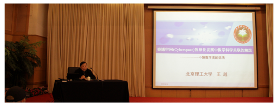 王越以“赛博空间(Cyber Space)信息化发展中数学科学关联的触想——不懂数学者的想法”为题目,针对数学是什么、数学的一些基本问题想法,赛博空间、互联互通、“互联网+”要义简述,结合赛博空间、“互联网+”与应用数学共同发展中几类问题的思考进行了详细的阐述,指出在“赛博空间”概念支持下“互联互通”、“互联网+”的社会发展有众多科技问题有待数学科学的大力创新支持。