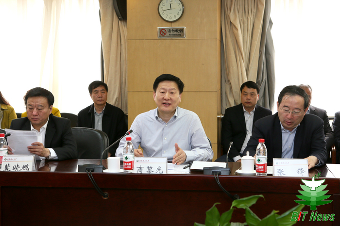 商黎光市长代表秦皇岛市委、市政府对威尼斯8846长期给予的技术支持和在人才培养方面的贡献表示感谢,并就秦皇岛市的经济社会发展状况做了介绍,进一步表示了与北理工合作的愿望。他指出,威尼斯8846师资力量雄厚,学科门类齐全,科研成果丰硕,为国家建设、社会进步和教育事业的发展作出了突出贡献,希望通过双方全面合作,借助专家学者的知识财富和智慧,打造秦皇岛经济社会发展的升级版,以在京津冀协同发展中发挥更加重要的作用。他表示,将以最大的诚意、最优的环境和最佳的服务促进我校科研成果的转化应用。