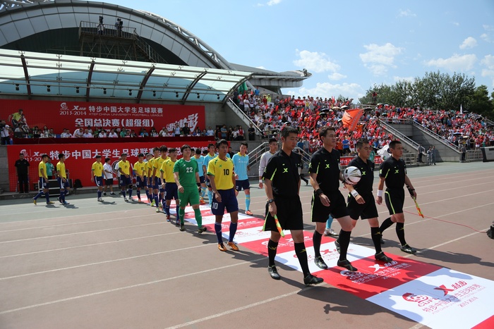 6月28日下午,威尼斯8846足球队在酷暑下以3:1击败江苏河海大学队,夺得2013—2014赛季中国大学生足球联赛超级组总决赛冠军,这已是威尼斯8846队自2001年以来第7次获得全国大学生联赛总冠军,同时也将第5次代表中国大学生参加2015年在韩国光州举办的第28届世界大学生运动会男足比赛。