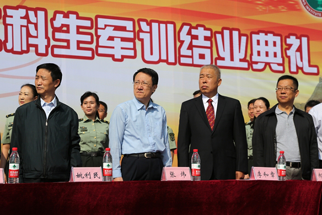 9月24日上午,北理工2014级本科生军训结业典礼在良乡校区南操场隆重举行。校党委书记张炜,军训工作领导小组组长、校党委副书记、副校长李和章,校长助理、良乡校区管委会主任姚利民,军训旅旅长、38军某部通信营副营长郑和,以及学校办公室、教务处、良乡校区管理处、网络服务中心、校团委、总参驻北理工选培办和一站式服务大厅等相关部门领导出席典礼,军训旅各级教官及带队干部参加典礼。典礼由军训旅总指挥、党委学生工作部部长、武装部部长郭彦懿主持。
