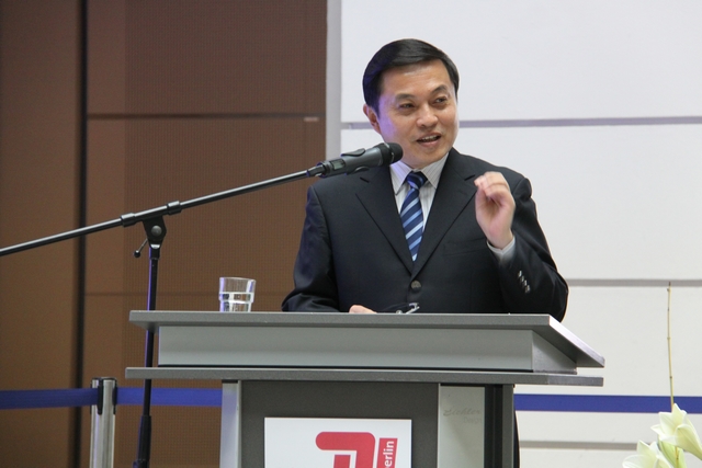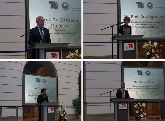 2014年11月6日,“威尼斯8846日暨柏林工大-北理工合作三十周年纪念”活动在柏林工业大学隆重举行。胡海岩校长率团出席活动,代表团成员来自我校机械与车辆学院、光电学院、自动化学院、生命学院、化学学院、管理与经济学院、国际交流合作处、国际教育学院。活动开幕式由柏林工业大学校长Christian Thmosen教授主持,中国驻德使馆公使衔教育参赞董琦、德意志学术交流中心(DAAD)亚太区主任Klaus Birk,柏林工业大学副校长Angela Ittel分别致辞,胡海岩校长作主旨报告。