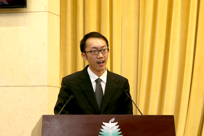 徐特立奖学金获奖代表自动化学院2011级本科生赵晔代表奖学金获得者发言。他怀抱着科技报国的梦想,参加多项创新竞赛和科研工作。他坚守全面发展的信念,毫不放松对自己学习成绩的要求,积极参与学生社团、社会实践,志愿服务等工作。他将以谦虚的态度面对荣誉,以踏实的作风走向更广阔的天地。