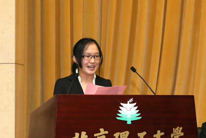 优秀学生干部代表、机械与车辆学院2011级本科生崔雨涵代表优秀学生干部发言。她坚持做好团支部工作,积极为同学排忧解难,营造团结向上的集体氛围。拓展平台,不断探索,打开新闻社工作新局面。她是同学们的知心姐姐,也是社团的领头人,踏实地做好自己热爱的学生工作。