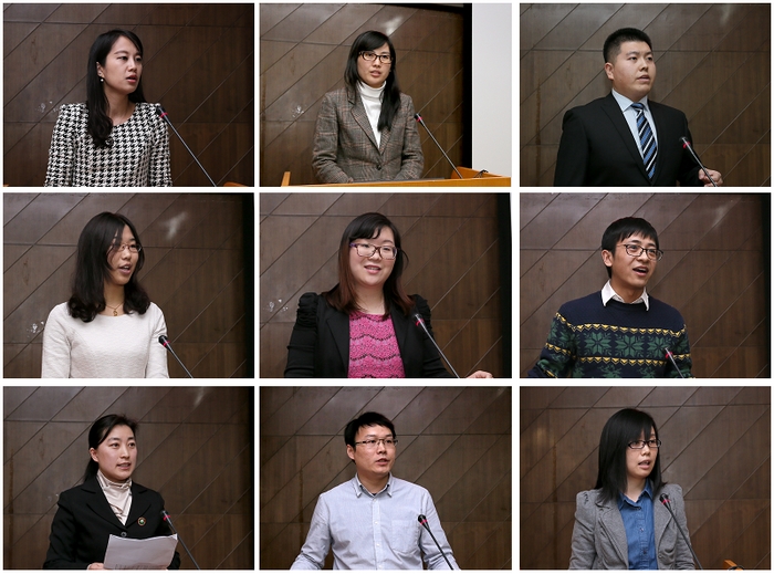 9位机关青年在本届论坛上发言。宣传部和霄雯以《透韧如竹 “笨”向未来》为题,从一个亲身经历的职场故事入手,讲述了如何以竹子般的透韧之劲扎实工作,奉献青春;国际交流合作处高珊以《不忘初心 方得始终》为题,以时间为线,结合学校工作对个人成长经历进行了回顾,为服务对象着想和团队精神的观点给人留下了深刻印象;发展规划处刘宇以《坚定信念 激情进取》为题,以“我是谁、为了谁、依靠谁”为主线,从自身定位、工作动力和工作方法分享了自己的体会;基建处李阳以《践行社会主义核心价值观 彰显北理工基建青年本色》为题,展示了北理工基建人的缩影,对大家理解如何在平凡工作岗位上践行社会主义核心价值观有了一定的帮助;招生就业工作处管帅华以《做好就业那些事儿》为题,以“勤、新、细、敬”四个关键字入题,谈了自己在就业工作中践行社会主义核心价值观的思考;人事处贾鹏程以《做一名勤学习 敢创新 有梦想的新时代青年干部》为题,讲述了他勤于学习、敢于创新、怀揣梦想的工作经历和心路历程,对青年很有启发;学生工作处孙西艳以《扶贫助困 以心换心》为题,分享了她在做学生资助工作过程中的收获、喜悦和奋斗;科学技术研究院陈柏强以《卯足三股劲头 争当一名产学研合作能手》为题,分享了他对产学研合作工作的认识、思考、实践和展望,认为做一名产学研合作能手应该具有笨劲、巧劲、闯劲三股劲头,职业化、市场化将是中国高校技术转移机构改革发展的方向;校团委苟曼莉以《做“北理合伙人” 从“五有”到“无忧”》为题与大家分享了青年干部要“有信仰、有思考、有情义、有魅力、有品位”的认识,将个人成长与学校发展紧密结合,倡议大家以主人翁姿态投入到工作中。