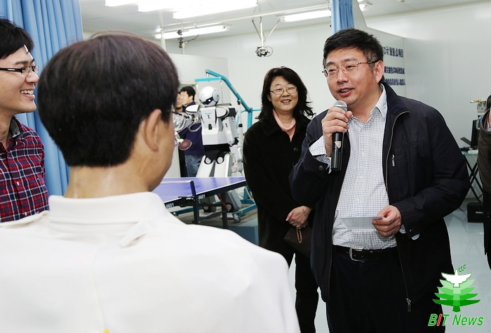 陈杰教授就智能机器人与系统高精尖创新中心发展历程、目标定位、建设方案以及工作进展进行了汇报,并重点介绍了学校对中心在政策、场地、人员、经费、发展规划等方面的支持和保障情况。双方就中心建设目标与定位、中心特区建设、研究方向/任务与科学家兴趣热点的动态调整、国际化软硬环境构建、人员引进/聘用的多元化方式、未来建设经费使用原则等问题进行了细致的交流与探讨。