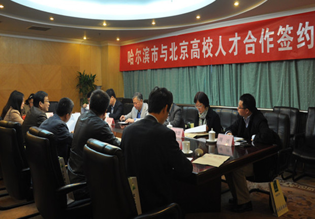 会上,包括我校在内的北京8所高校代表与哈尔滨市人力资源和社会保障局领导签订了人才合作协议,并就加强校地双方合作以及人才引进的方式、方法等问题进行了交流座谈。