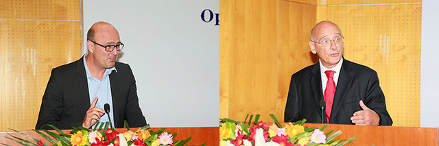 康斯坦斯应用科学大学Josef Wieland教授与Roland Luxemburger先生共同给第七期毕业生颁发了学位证书并给予了美好祝愿。第七期毕业生代表康毅和第九期新生代表姚建涛分别发言。