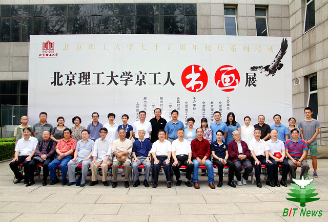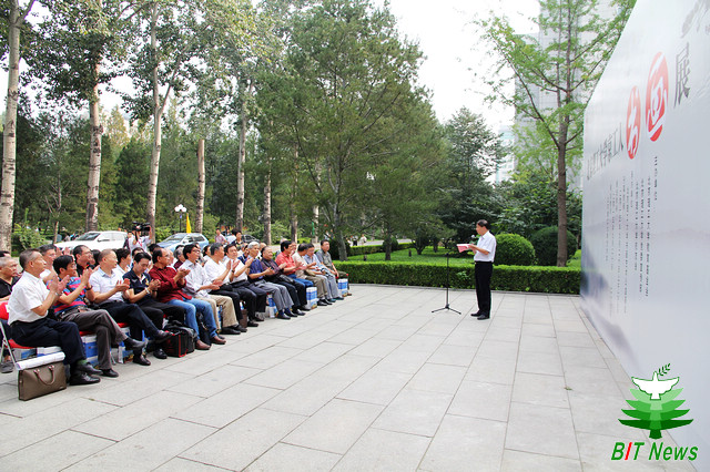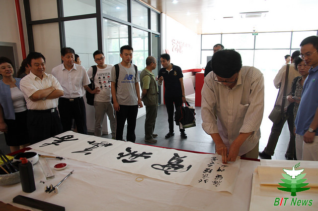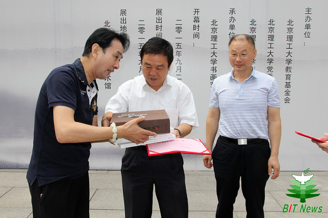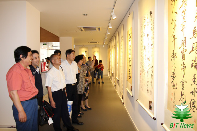 学校办公室、党委宣传部、校友会办公室、校团委、档案馆、图书馆、离退休工作处、人文学院、设计学院、国际教育学院和教育基金会办公室负责人,离退休教师代表,学生代表参加书画展开幕仪式。
