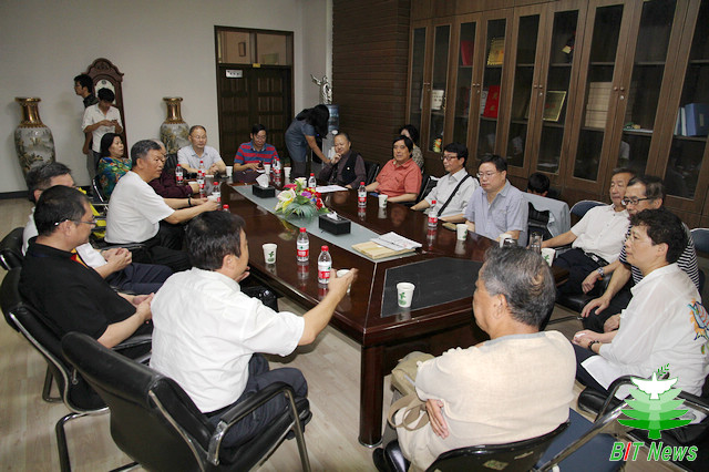 开幕仪式前,杨宾和校友进行了座谈。校友踊跃发言,认为母校注重对学子知识的传授与人格的培养,同时也重视发挥学生的艺术特长,让他们在艺术的氛围中成长。学校不仅能培养造坦克的工程师,还能培养出书画家。校友们就理工院校发展书画艺术专业,提出了个人的建议。寄语学弟学妹在扎实学习专业课程的同时,多培养一些艺术方面的兴趣爱好,将受益终生。