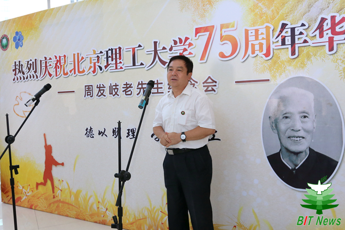 杨宾副校长在发言中指出,周老一生教书育人,辛勤耕耘,培养了大批优秀人才。为弘扬崇尚科学、尊师重教的大学文化,激励后辈继往开来。他很高兴地看到当年接受周老教诲的学子、校友以及从事火炸药相关研究工作的同仁踊跃捐款、鼎力支持。先生的精神激励着北理校友,他的英名永远镌刻在科学的丰碑上,他是我们学校永远的骄傲!