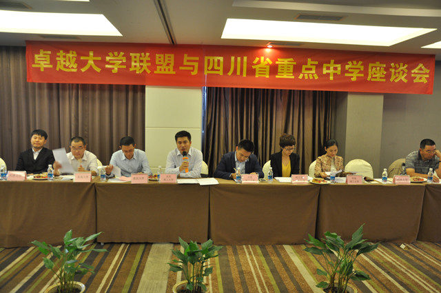 10月15日下午,卓越大学联盟各高校招生负责人分别向成都石室中学、成都树德中学、成都第七中学、成都七中嘉祥外国语学校、成都市第八中学、成都华阳中学、绵阳中学、四川省南充高级中学、达州市第一中学和四川省大竹中学10所四川省重点中学校长介绍了各高校基本情况及近年在四川省的招生录取情况,听取了四川省优质教育促进会有关 “高中大学衔接特色课程”的成果展示,并与各重点中学校长在建立招生宣传长效机制、改进自主招生评价方法等方面进行了深入探讨。会后,卓越大学联盟为这10所四川省重点中学分别授予了“卓越大学联盟优秀生源基地”的牌匾。此次会议为卓越大学联盟各高校与四川省教育考试院、以及重点中学建立更加广泛的联系,开展更加全面、深入的交流和合作奠定了基础。