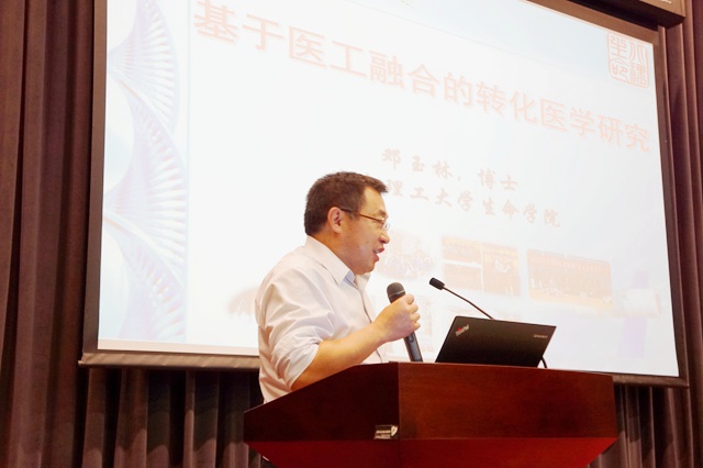 北理工生命学院院长邓玉林教授作了“基于医工融合的转化医学研究”,介绍了学校生命学院近年来在生物技术方面取得的论文、专利等研究成果以及成果转化和国际合作情况,并提出了成立生命研究成果孵化基地的设想。