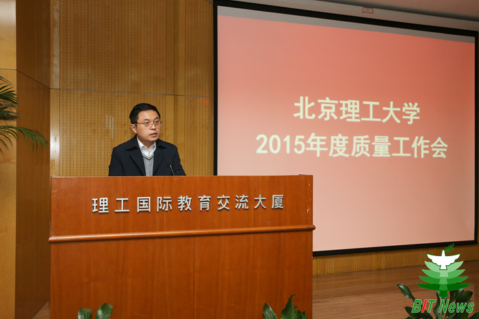 陈杰副校长作了“十二五”质量工作报告,报告从几个方面介绍了“十二五”期间学校质量体系的运行情况,分析了当前质量工作面临的形势,提出了加强质量意识、提升装备质量、加强条件建设、加强质量管理等方面的要求。