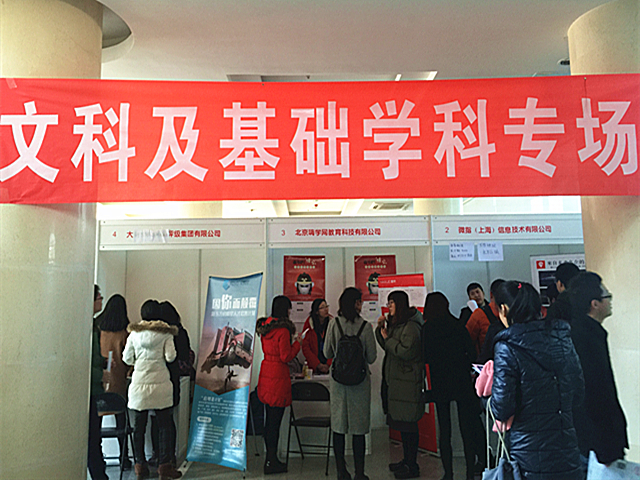 2015年12月15日上午,我校在良乡校区工业生态楼一层大厅举办了“文科及基础学科专场招聘会”。中国人民解放军5715工厂、中国科学院山西煤炭化学研究所、中国物业管理协会、新东方教育科技集团等28家单位参加了本次招聘会,为我校毕业生提供近千个就业岗位。