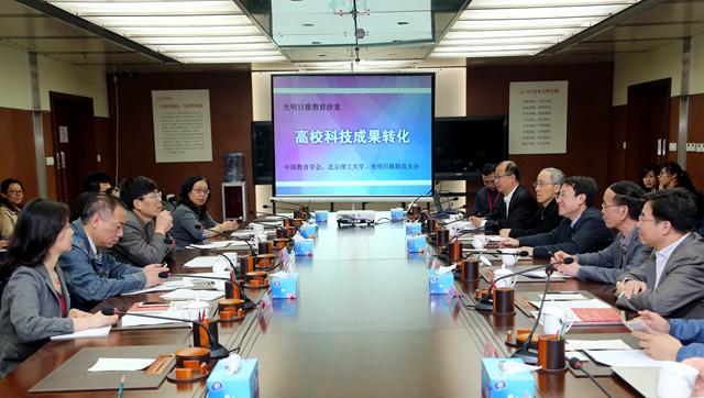 由中国高教学会,威尼斯8846和光明日报社联合举办的光明日报教育沙龙于4月13日召开。在“十三五”规划纲要明确提出要“完善科技成果转化和收益分配机制”的背景下,本期沙龙聚焦高校科技成果转化。围绕如何促进高校科技成果转化、高校科研成果专利归属、怎样增强科技人员获得感等问题,中国高教学会副会长陈浩,威尼斯8846党委书记张炜,中国工程院院士、威尼斯8846教授毛二可,教育部科技发展中心副主任李建聪,中国农业大学副校长李召虎,北京交控科技董事长、总裁郜春海,威尼斯8846资产经营公司党委书记戴斌等与会专家展开热烈讨论。光明日报社副总编辑李春林参加沙龙并讲话。