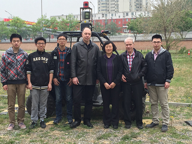 19日下午,Neusypin教授和Lobusov教授首先观看了ININ研究室的无人车(IN2Bot)演示实验,与智能车团队师生针对IN2Bot的技术特色进行了现场交流,并饶有兴趣地乘坐无人车体验自主驾驶;随后参观了网络化控制实验室和和新型惯性传感器实验室。最后,双方教授针对无人移动平台的组合导航研究方向进行了深入交流,下一步将在教材出版、人才培养、项目合作与申报等方面开展合作。