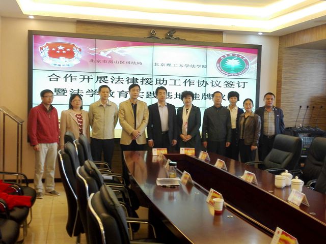 2016年4月21日上午,北理工法学院与房山区司法局举行了合作开展法律援助工作协议签订暨法学教育实践基地挂牌仪式。