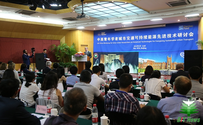 胡校长和Johnston校长随后出席“中英青年学者城市交通可持续能源先进技术研讨会(UK-China Workshop for Early Career Researchers on Advanced Technologies for Energising Sustainable Urban Transport)”并致辞。