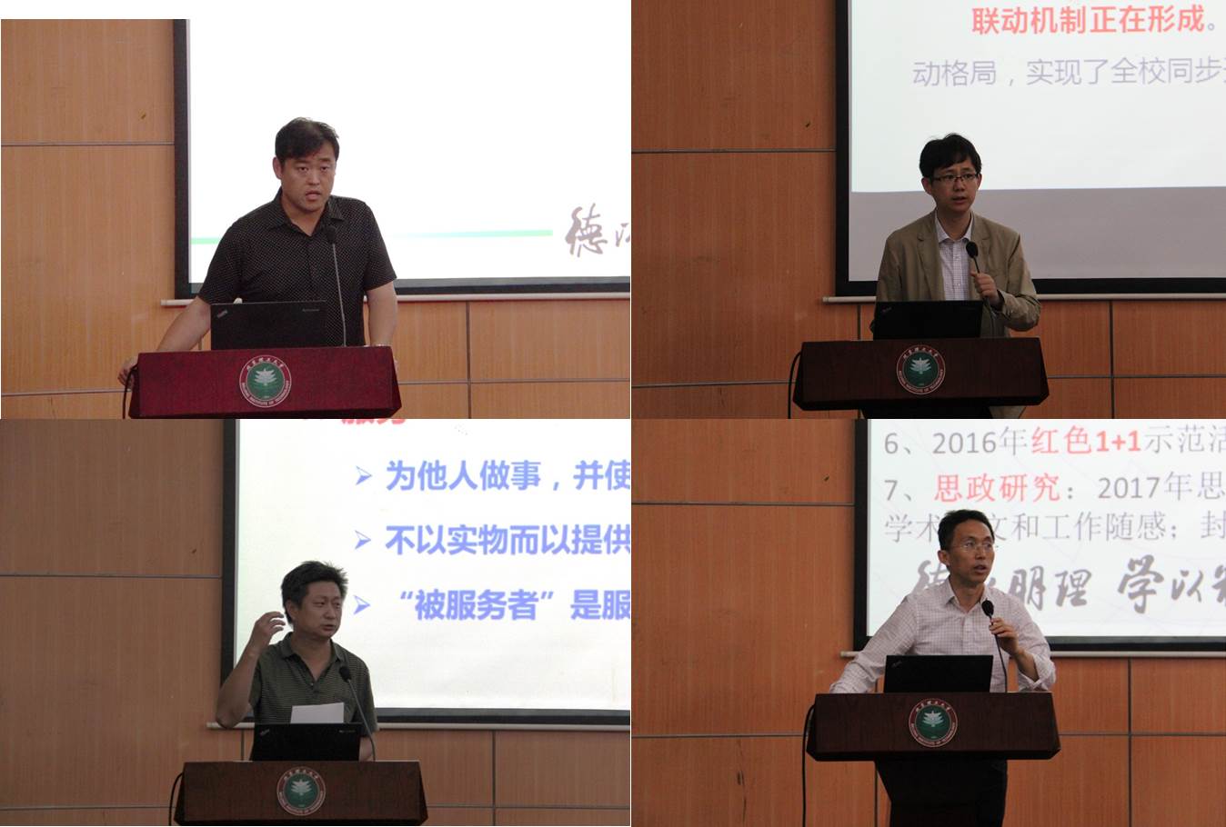 郭彦懿介绍了学工部、研工部机构调整后的科室划分及岗位职责,对加强和改进学生思想引导、“两学一做”、两校区运行、心理健康教育、毕业季活动、校园安全稳定等重点工作进行了详细安排。以问题为导向,强调学生工作干部要及时关注学工办公平台通知并安排好工作,严格执行会议和值班的请销假制度,考试周到来之前,要加强考风考纪教育。强调要加强学生思想引导工作,坚持以正面教育为主、管好阵地平台、关注学生思想动态、加强分析研判、细化应对预案,及时引导响应。明确了学生工作干部“加强思政教育、维护安全稳定、开展党建团建、服务学生发展”等四项主体责任。