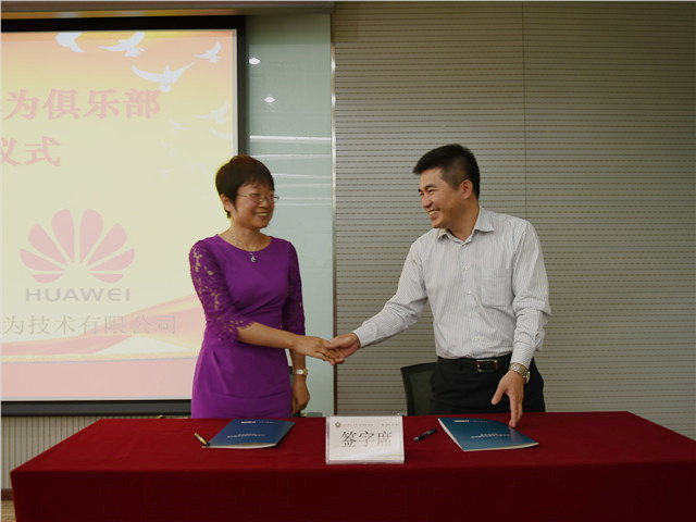 李振键和张丽娟共同签署了华为俱乐部合作协议, 王晓锋和田兴普为华为俱乐部揭牌。