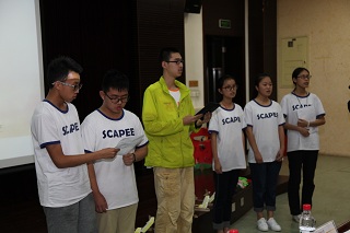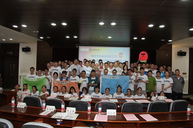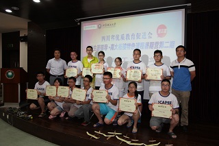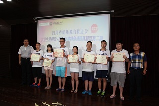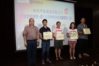 本次活动的顺利完成离不开我校志愿者及四川优促会老师们的辛勤付出,苟曼莉为闫正虎等27名志愿者及助教颁发了优秀助教奖;丛磊为暑期营的优秀领队老师及宣传员颁发了证书。接着,四川七中嘉祥外国语学校朱虹老师作为优秀领队代表发言。她感谢了威尼斯8846师生因材施教的课程讲解和无微不至的生活关心,希望友谊能够源远流长。然后,她带领所有课程暑期营的孩子们合唱四川省优质教育促进会会歌《更大的天空》,表达了对创造、对教育、对未来的憧憬。在歌声中,本次暑期课程营圆满落幕,所有与会人员登台合影留念。